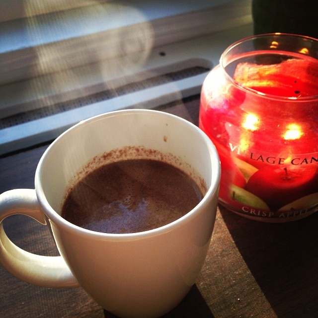 I managed to fly to and from China for business and stay healthy but spent a few hours in a room with 1 sick 2 year old at my nieces Christening and caught a cold! After our snow storm and it being -8 degrees outside, I wanted something besides hot tea and water to nurse this cold. I created this not really expecting it to taste as good as it did. If you have a sweet tooth like me and love chocolate, you’ll love this! What’s better than liquid chocolate :p Enjoy!